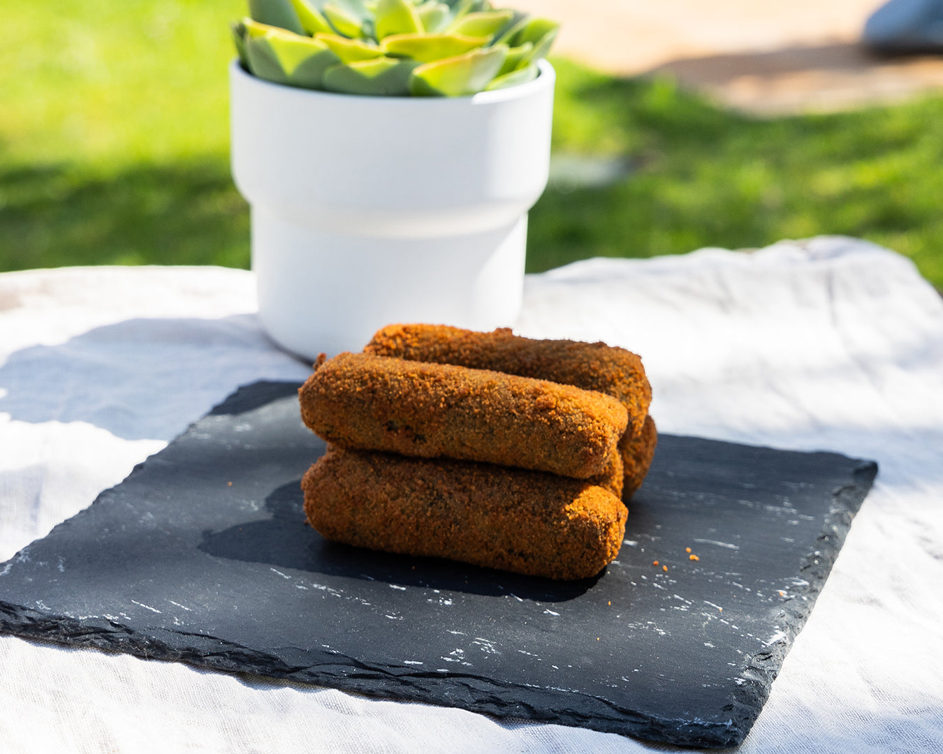 Seitan, vegan bechamel, breadcrumbs, flaxseed, dry shitake.